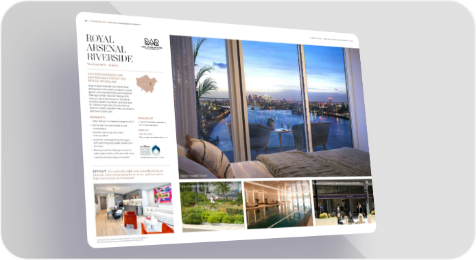 54 | PORTFOLIO 2024 GREATER LONDON DEVELOPMENTS PORTFOLIO 2024 GREATER LONDON DEVELOPMENTS | 55 ROYAL ARSENAL RIVERSIDE Woolwich, SE18 – Berkeley LIVE THE RIVERSIDE LIFE, EFFORTLESSLY CONNECTED BY RAIL, RIVER & AIR 23 Royal Arsenal Riverside is an established development with a 180% increase in capital growth, and is exceptionally well connected offering a vibrant riverside lifestyle. With many on-site amenities which include an on-site Elizabeth line station and Uber Boat by Thames Clipper pier, it’s also home to Woolwich Works, awarded Time Out London’s Best New Culture Spot. HIGHLIGHTS AVAILABILITY – Only 7 minutes* to London City Airport via DLR 1, 2 and 3 bedroom apartments. – 23 minutes* from Bond Street via the Prices from £450,000 on-site station CONTACT – Over 1km of river path with views 020 3918 3558 of Canary Wharf www.royalarsenalriverside.co.uk – Residents’ wellbeing facility with a gym, 20m swimming pool, private cinema room and more – Buzzing retail hub including restaurants, pubs, supermarkets, cafés and much more – Selection of homes ready to move into Mixed-Use Development of the Year KEY FACT You can breathe a little easier around Royal Arsenal Riverside, where we have planted trees, shrubs, and 昀氀owerbeds to help create a cleaner air environment. RIVER THAMES VIEWS OPEN PLAN LIVING SPACE 4 ACRE MARIBOR PARK 20M SWIMMING POOL ON-SITE WOOLWICH ELIZABETH LINE STATION *Journey times are approximate only. Sources: tfl.co.uk and Google Maps. Computer-generated images and photography are indicative only.