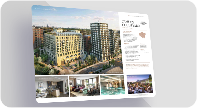 60 | PORTFOLIO 2024 GREATER LONDON DEVELOPMENTS PORTFOLIO 2024 GREATER LONDON DEVELOPMENTS | 61 CAMDEN GOODS YARD Camden, NW1 – St George A NEW RESIDENTIAL DISTRICT IN NW1 26 Welcome to Camden Goods Yard, a remarkable 8 acre destination nestled in the heart of this renowned North London neighbourhood. This exceptional development seamlessly combines the dynamic energy of Camden, the elegance of Primrose Hill and the tranquillity of Regent’s Park. HIGHLIGHTS AVAILABILITY – Perfectly situated in zone 2 with excellent travel Manhattan, 1, 2 and 3 connections from Chalk Farm and Camden bedroom apartments. Town stations (a 10 minute* walk away) Prices from £725,000 – Carefully curated interiors by world-renowned CONTACT designer Tara Bernerd & Partners 020 3642 4275 – An impressive range of residents’ facilities: www.camdengoodsyard.co.uk concierge, residents’ lounge, business centre and three luxurious screening rooms – Exclusive wellness suite with indoor swimming pool, sauna, steam room and gym – Camden’s first rooftop farm-to-fork restaurant – New urban supermarket and diverse range of commercial workspaces KEY FACT As part of the Camden Goods Yard masterplan, a new rooftop urban farm is anticipated to open in 2025. Featuring circa 5,759 sq ft.** of growing space, the produce will be cultivated for the on-site farm-to-fork restaurant. A TRULY EXCITING PLACE TO LIVE KITCHEN DINING ROOM LIVING ROOM SWIMMING POOL ROOFTOP URBAN FARM *Journey and distances times are approximate only. Sources: tfl.co.uk and Google Maps. **Subject to planning permission. Computer-generated images and photography are indicative only.